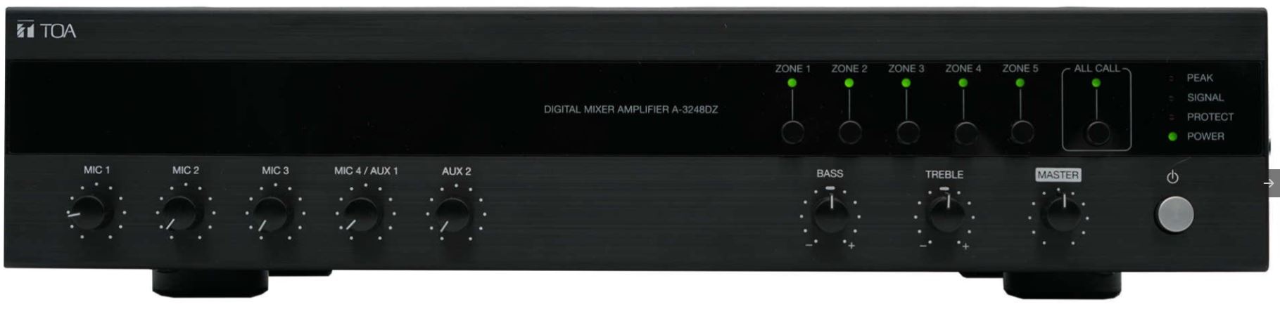 A-3200DZ to idealny wzmacniacz do małych i średnich pomieszczeń, w których potrzebna jest muzyka w tle i funkcja przywoławcza. Oferuje trzy modele o mocy wyjściowej 120 W, 240 W i 480 W. Jego wyróżniającą cechą jest Terminal Zarządzania Strefą – innowacyjny system, który pozwala sterować dźwiękiem i dystrybuować go do maksymalnie 5 stref. Niezależnie od tego, czy potrzebujesz muzyki, czy komunikatów w oddzielnych pomieszczeniach, A-3200DZ zapewnia elastyczność w dostosowywaniu jakości dźwięku do każdej strefy, gwarantując optymalną dystrybucję dźwięku w całym pomieszczeniu.