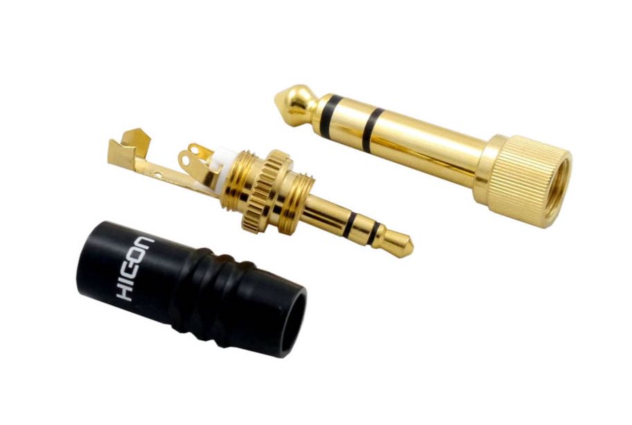 HICON HI-J3563S to męski wtyk stereo mini Jack 3,5 mm (1/8”) niemieckiej marki Sommer Cable , który sprzedawany jest w komplecie z nakręcanym adapterem na Jack 6,35 mm TRS (1/4“).
