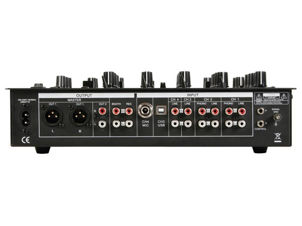 - Wyjścia: 2 master (XLR i RCA), 1 Rec (RCA) i wyjście monitora Booth (RCA)